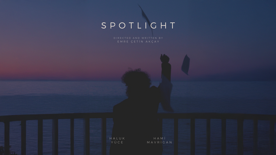 Emre Çetin Akçay'ın ilk filmi Spotlight, yazar ile karakter arasındaki ilişkiden yola çıkarak sorumlu acı, sorumsuz acı ve yaratım kavramlarına yönelen felsefik temelli bir kısa film.